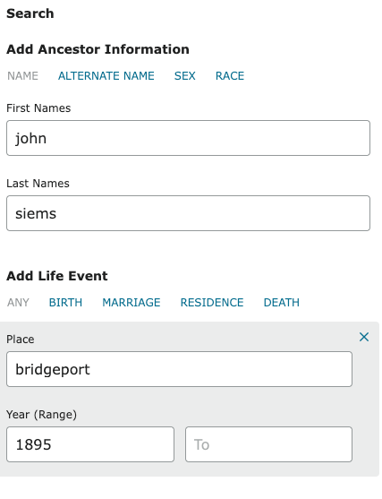 As before, if you aren’t already familiar with sources of birth records either to request as an eligible relative/researcher or to search what is publicly available, you can start by searching for “birth records <city, state, or country>”.