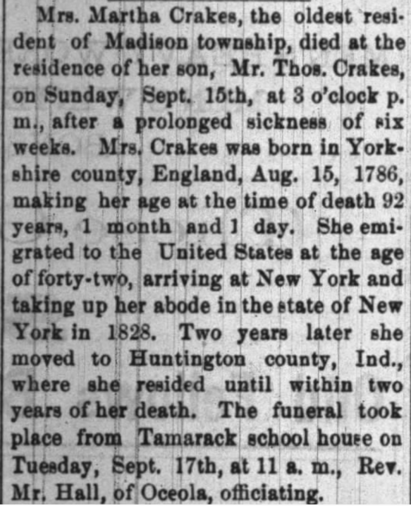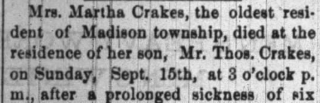 Remember Martha Crakes from our last post? This is her obituary in full. What additional information can you find?
